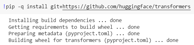 These models are available in Hugging Face and Hugging Face has inbuilt APIs to use these models easily. Let's start with installing the required library from the hugging face-